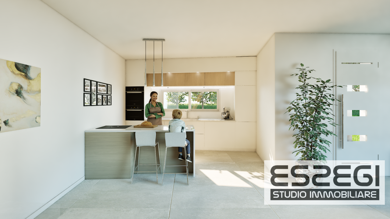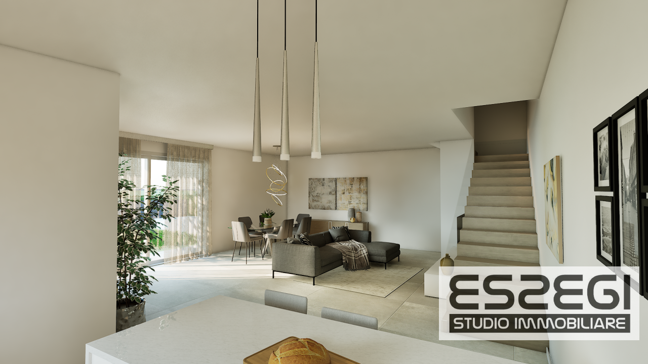 Al piano terra ingresso, zona living di oltre 50mq. con soggiorno/pranzo e cucina a vista (separabile), uscita verso il patio ed il giardino, bagno/lavanderia e comodo garage collegato all'abitazione.